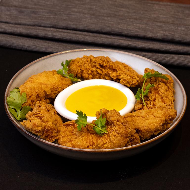 39 ر.ققطع متبلة ومقلية من فيليه الدجاج المغطى بالكعك , اطلبها مع صلصة بانج بانج , خردل بالعسل , بافالو او باربيكيو